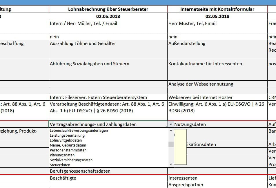 Das elektronische Verarbeitungsverzeichnis ist schnell mit Auswahllisten auszufüllen.